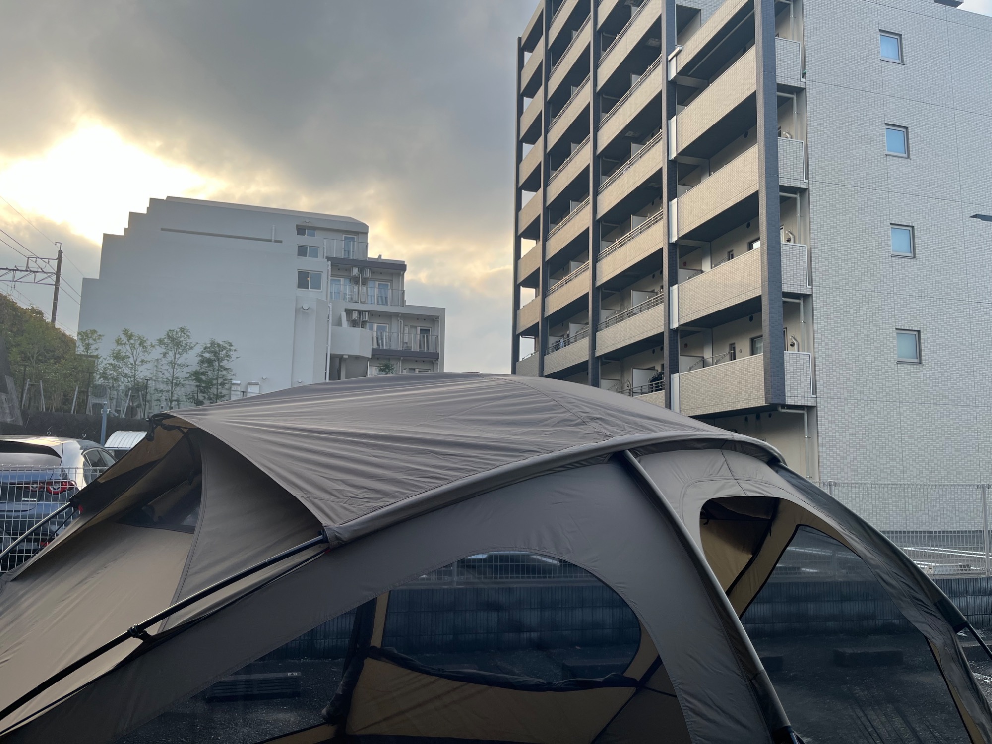 雨天時は標準で付属しているルーフフライを取り付けることで、防水対策を強化することができます。