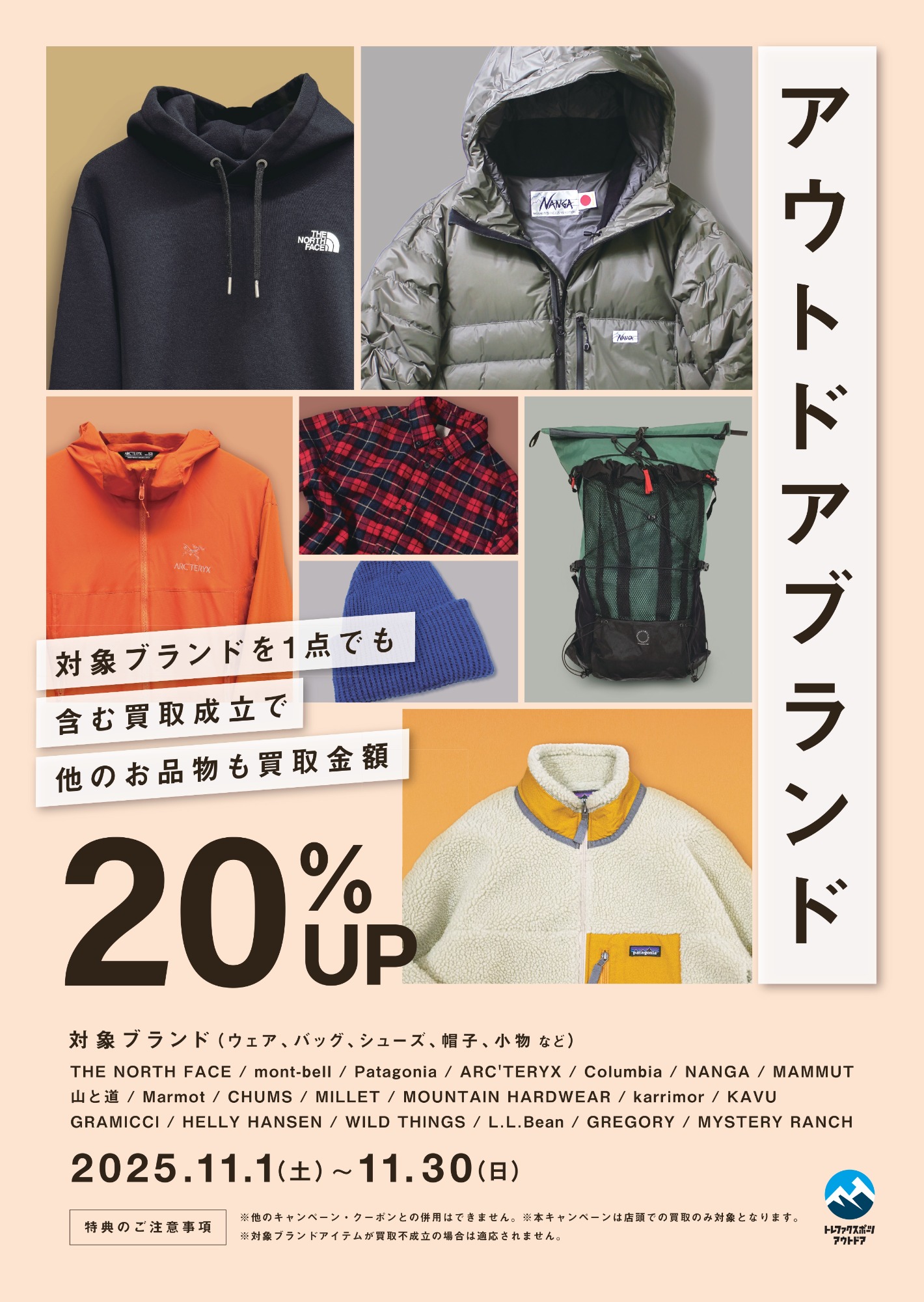 アウトドアブランド買取20%UPキャンペーンを開催中!!