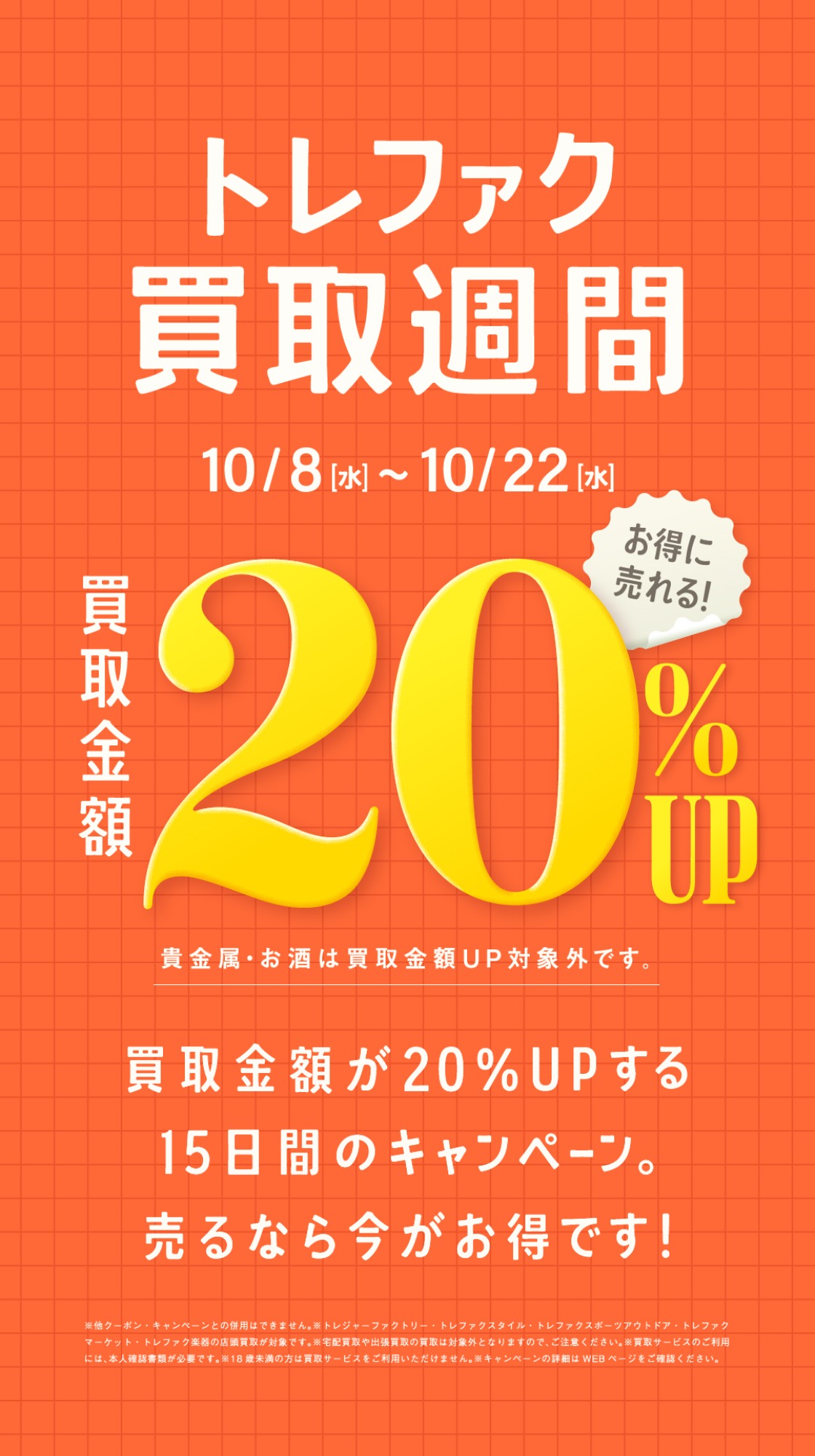 期間中にお持ち込み頂いたお品物が全て20%アップとなるキャンペーンを開催中!!