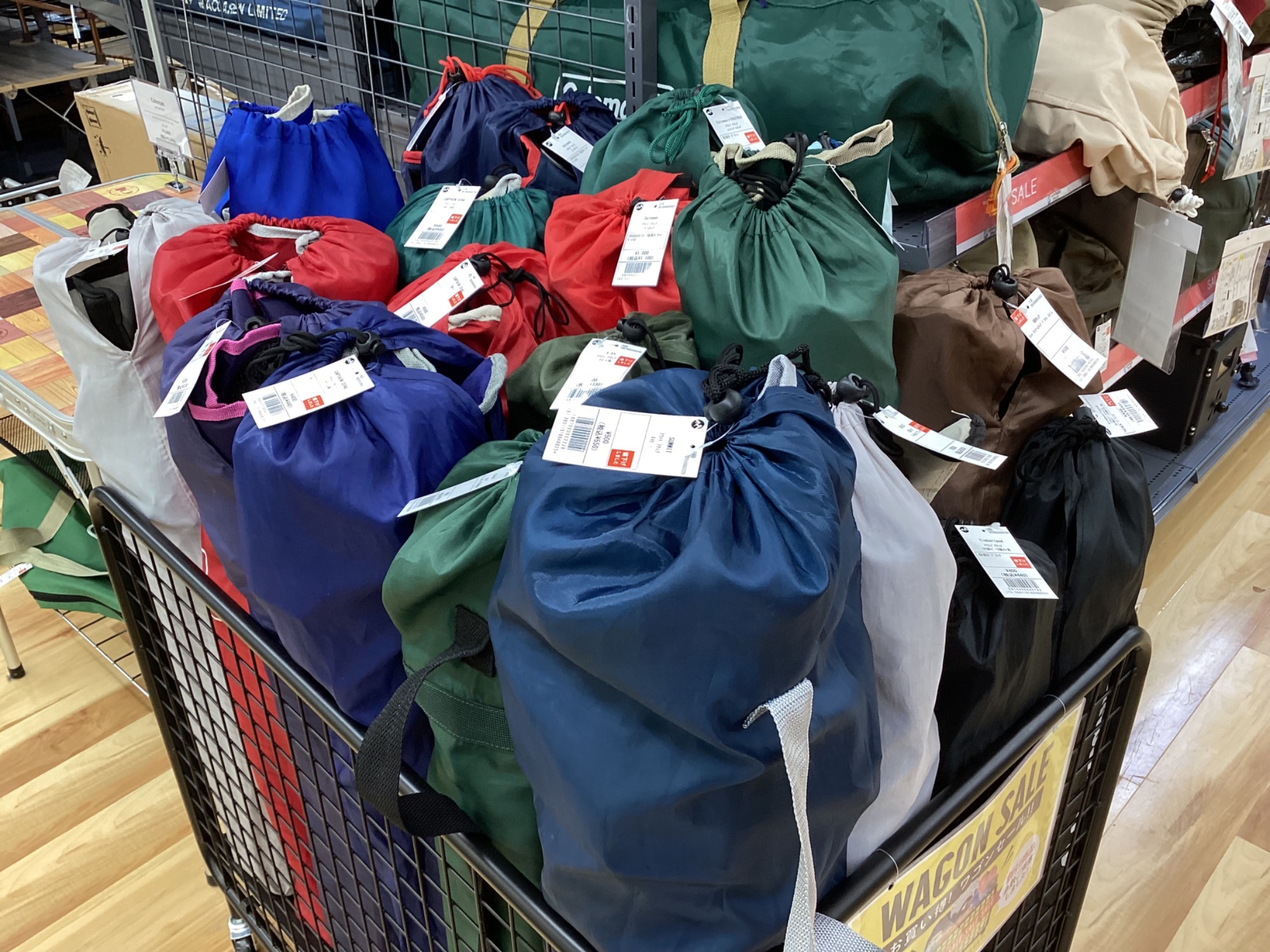 また、テント・タープSALEコーナー横のワゴンには大変大変お求めやすい価格で【アウトドアチェア】を展開中です。