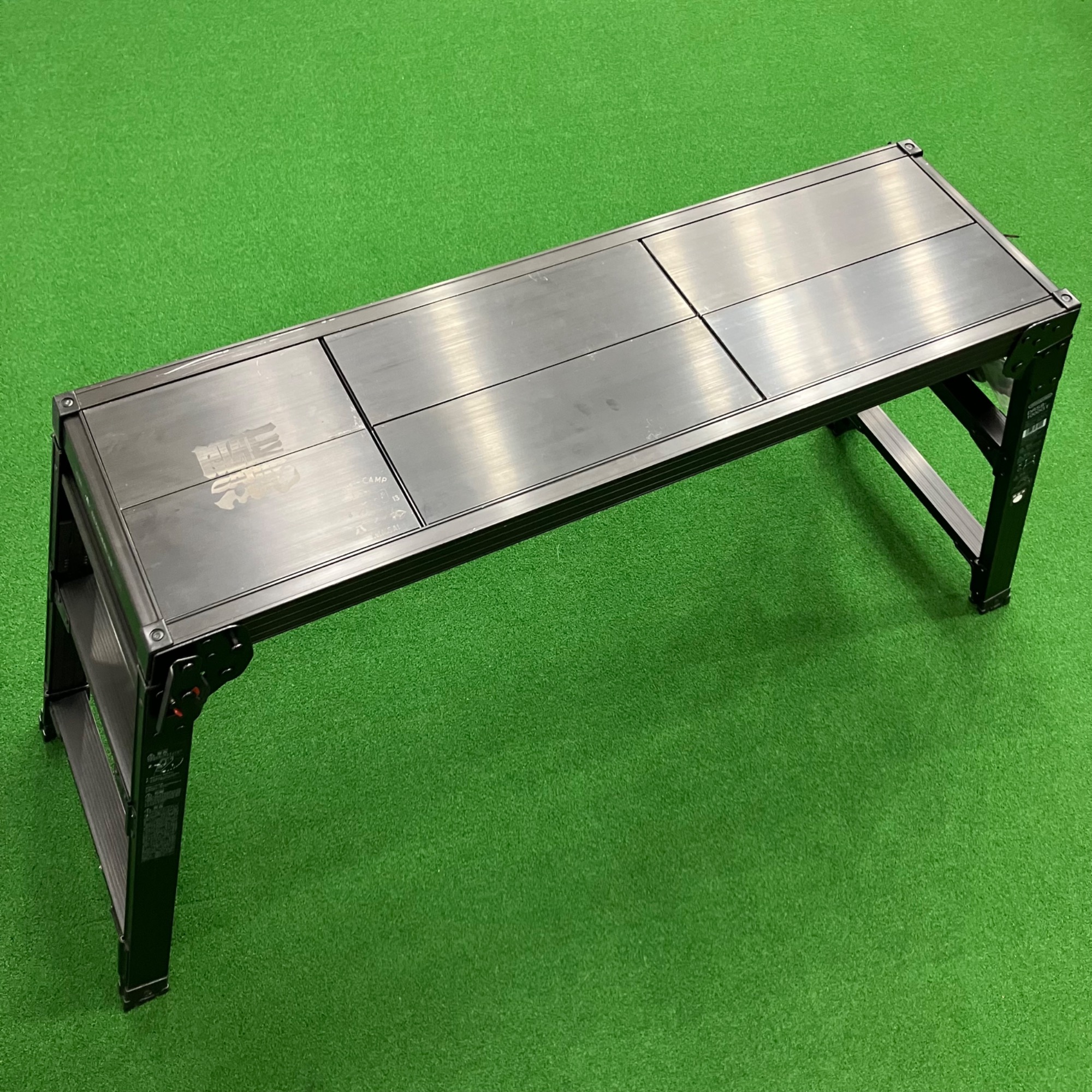 脚立メーカーとして世界的に知られるハセガワの技術が惜しみなく投入された足場台をベースに、アウトドアでの使用を想定したカスタマイズが施されています。