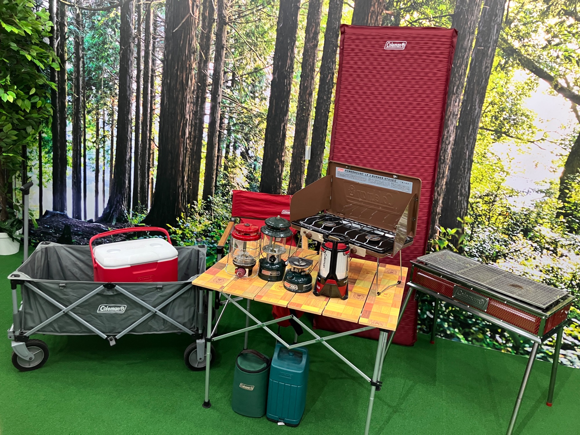 コールマンの製品群の中でも、200Aや286Aなどのガソリンランタン、タフワイドドームなどの定番テント、スチールベルトクーラーは不動の人気を誇ります。年代物のビンテージランタンはパーツの仕様やカラーリングの違いでコレクターからの需要もあり、現行品にはないレトロなシルエットや素材感が魅力です。また、シーズンズランタンや別注カラーなどの限定モデルも、通常のモデルとは異なる使用シーンを演出できるため、当店でも力を入れてお見積もりさせていただいております。
