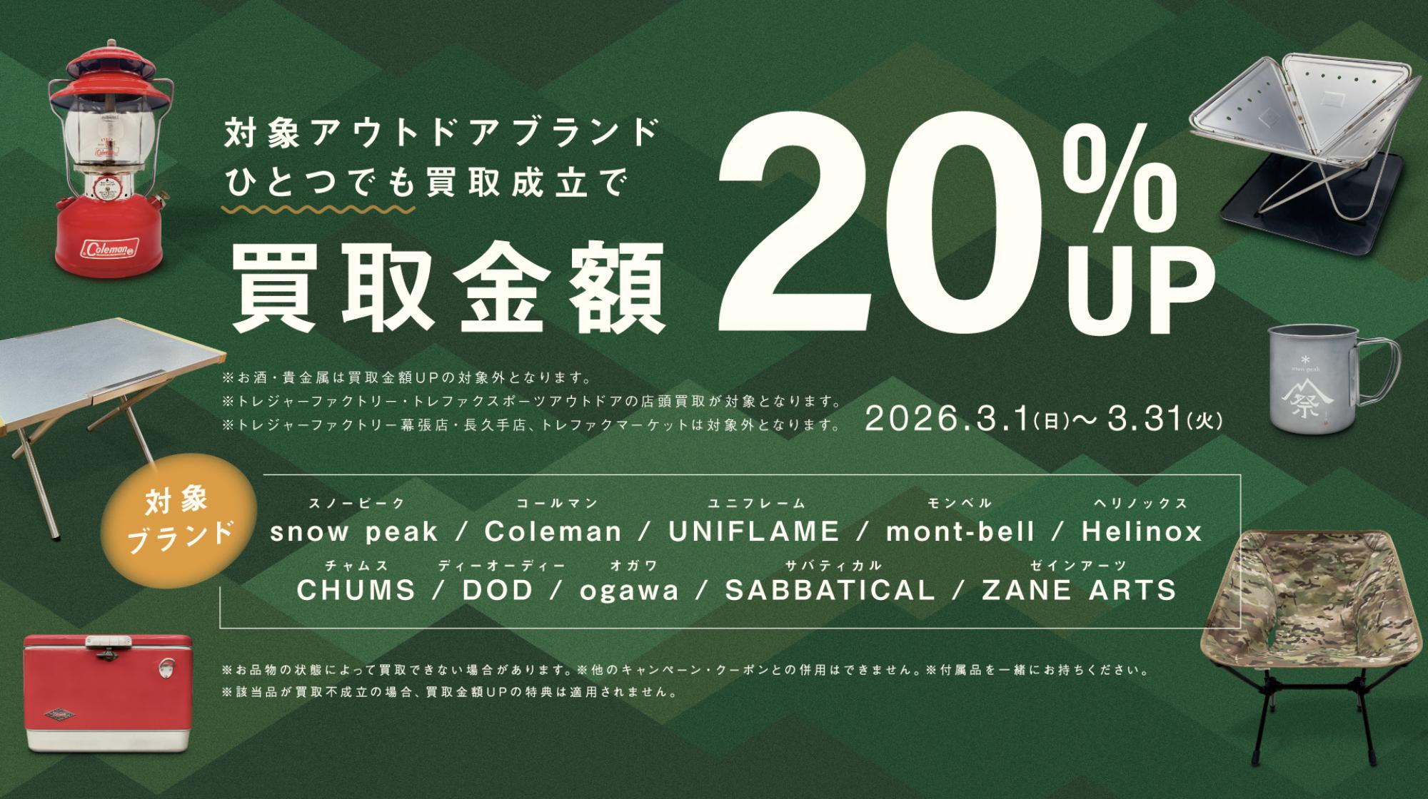 アウトドアブランド買取金額20%アップキャンペーン開催中!【3/1~3/31】