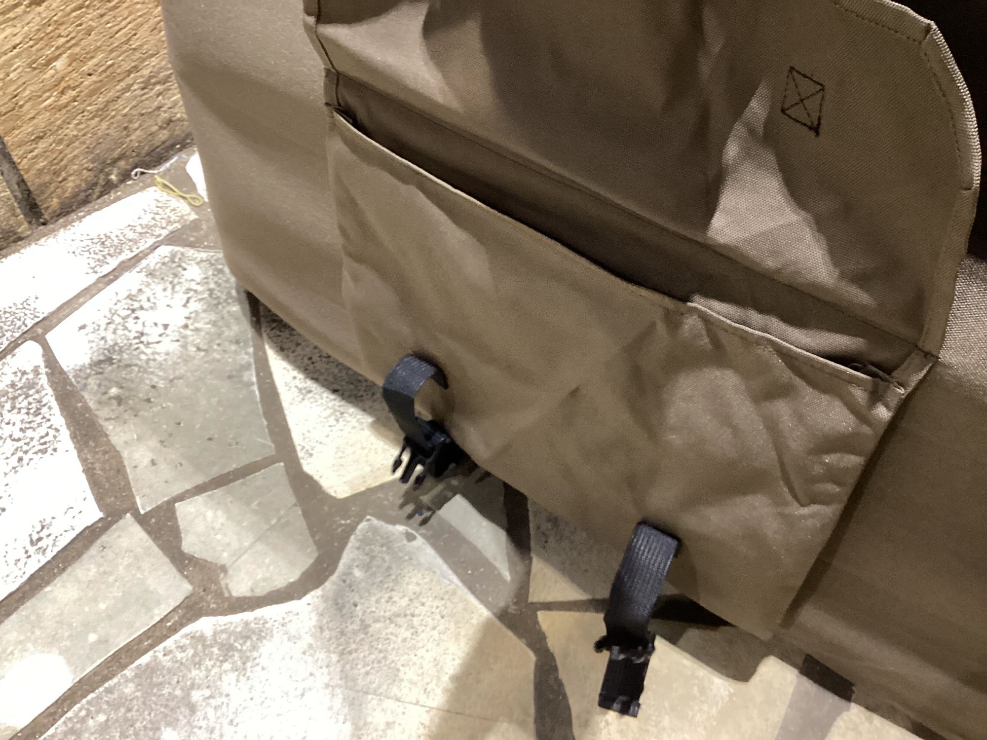ソファ・ベッド共に、カラビナなどをかけられるチェーンや、小物を収納できる袋も取り付けられています!