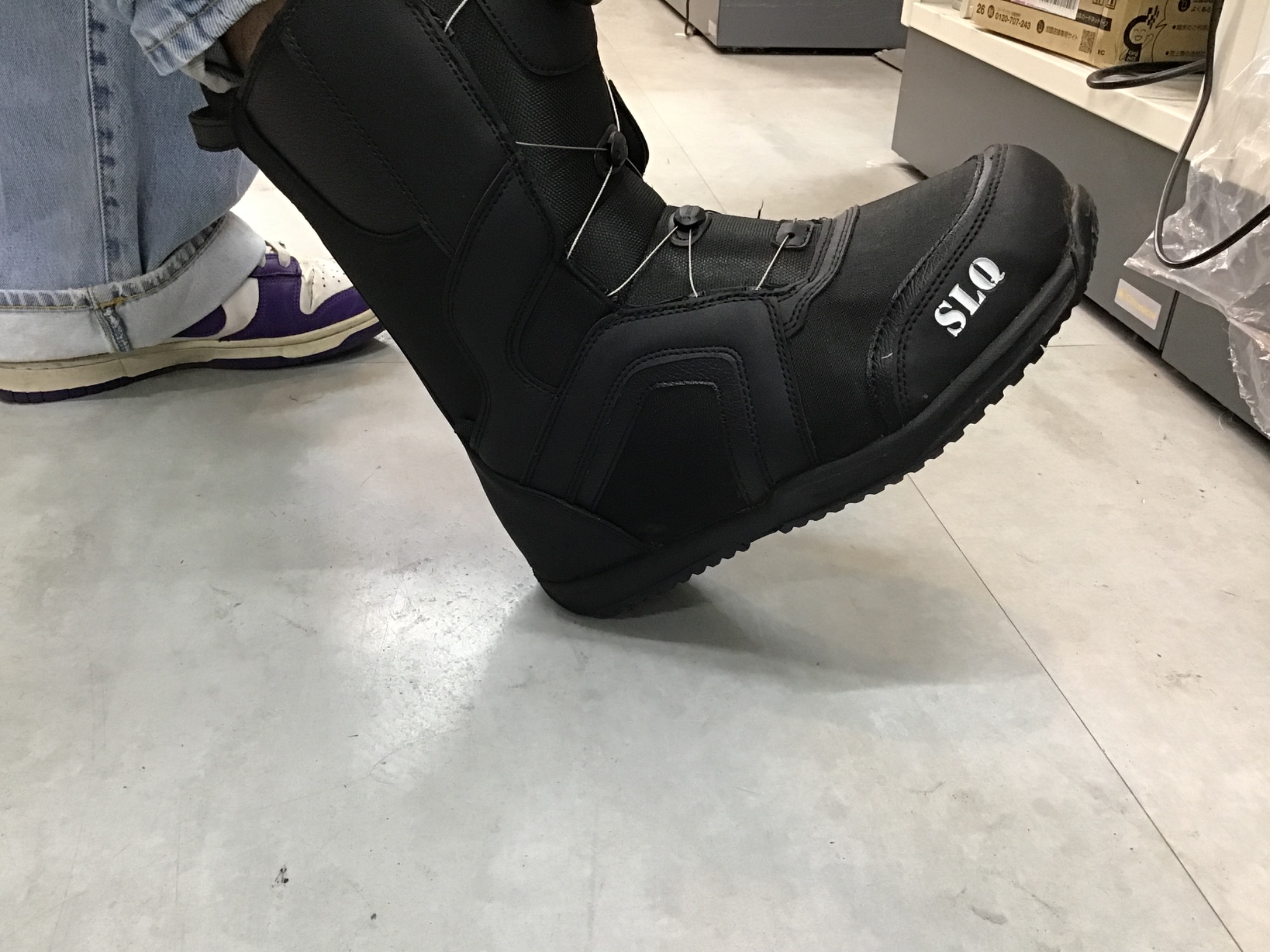この時に動いていて違和感がないか、ブーツと脚の間に隙間が広くないかを確認してください!